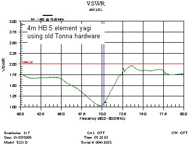 The old 5 element 6m antenna from F9FT ( Tonna ) 20505 was a reasonable performer but it was never going to be a DX buster. Its a little short for a six metre antenna but on 4m
