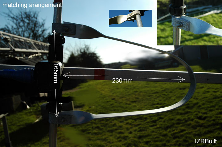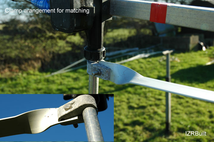 Drill 1/4 inch (6mm) holes in the end of the strip, close to the end. Use the original clamps that originally held the 4mm wire matching inductor to attach it to the driven element.